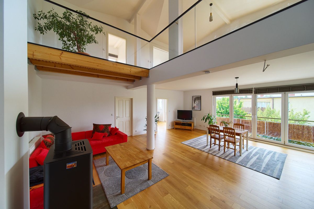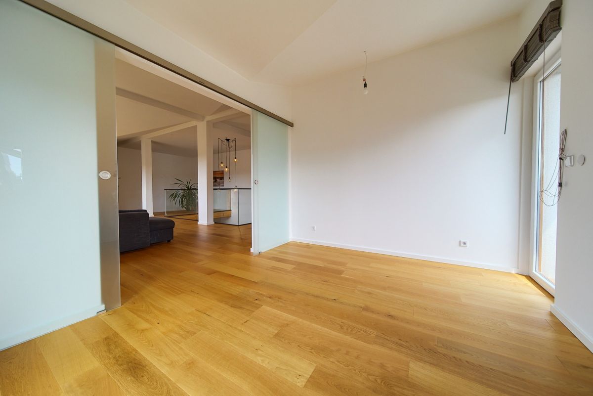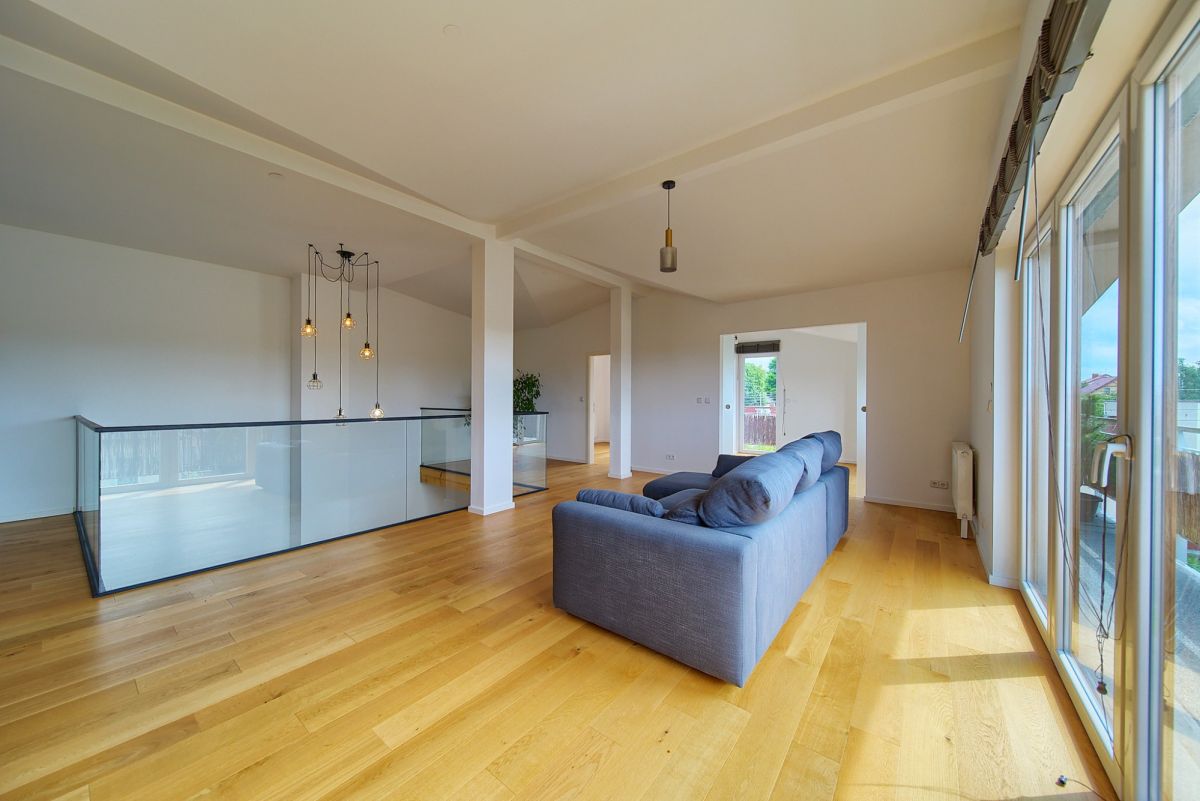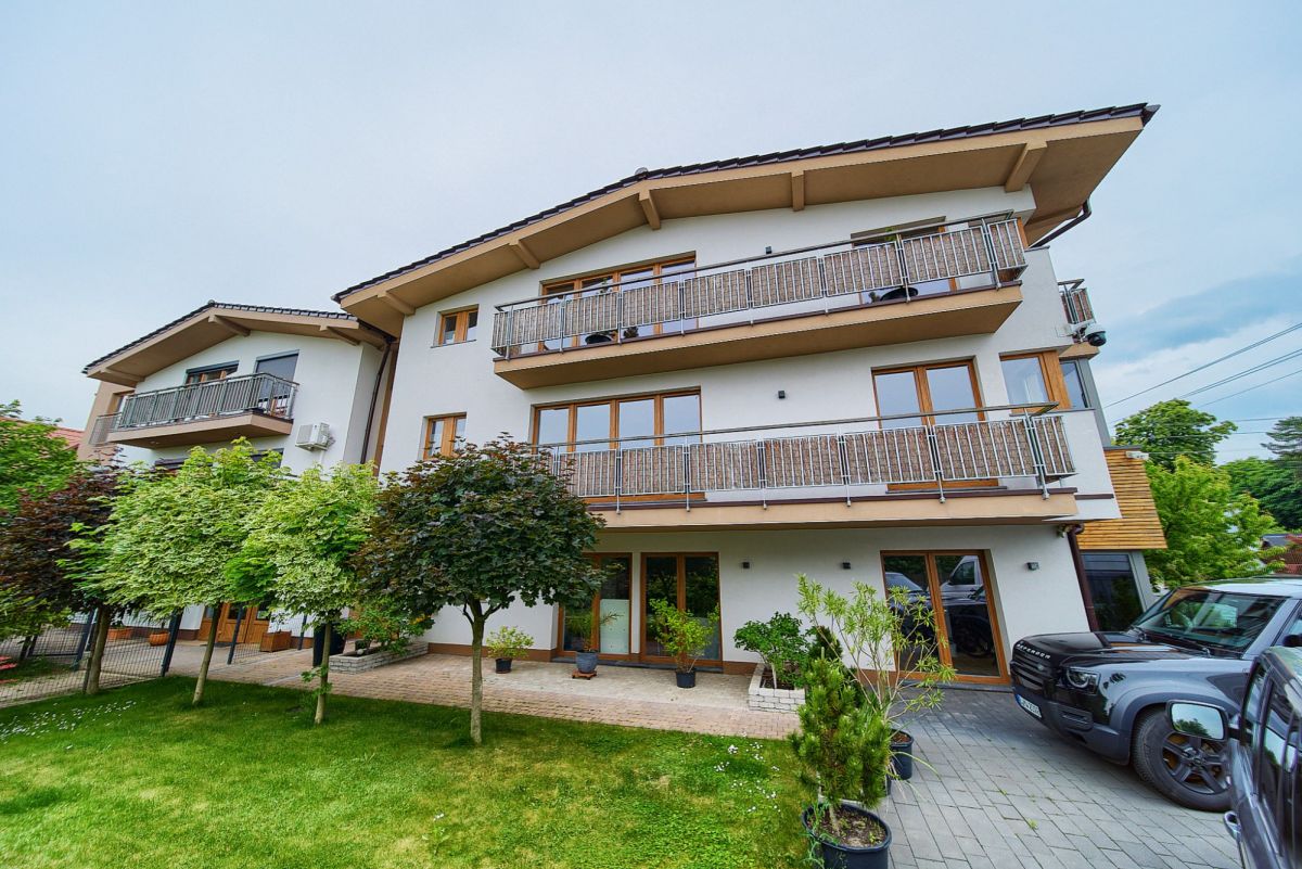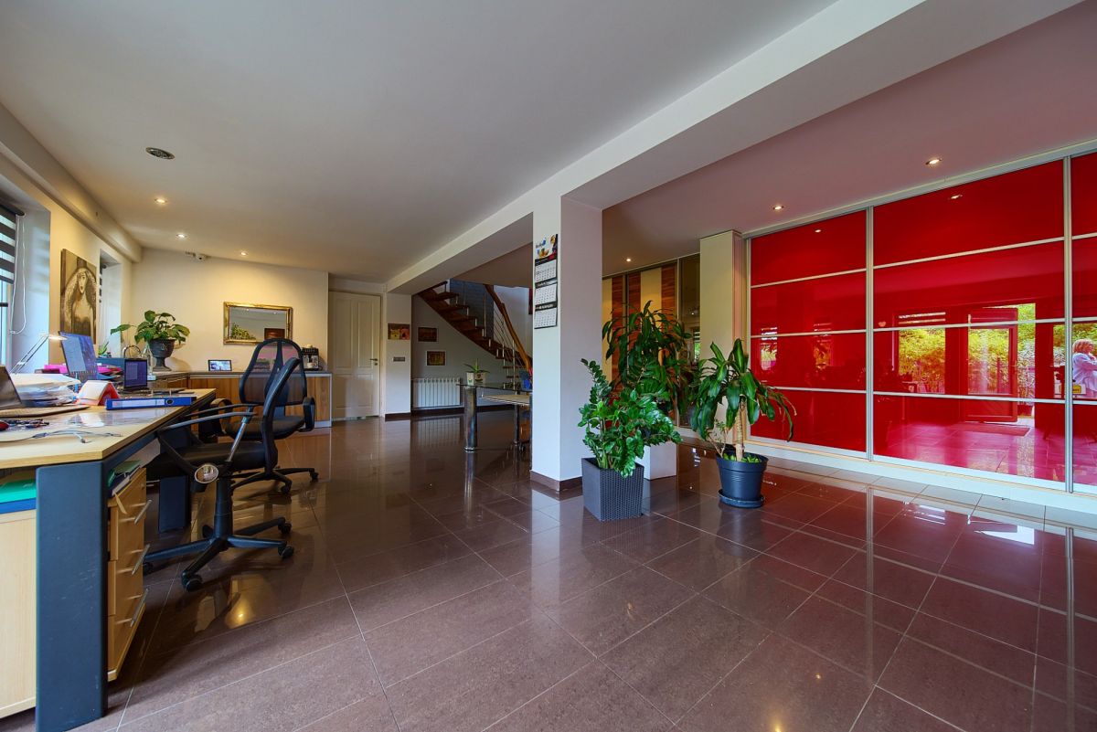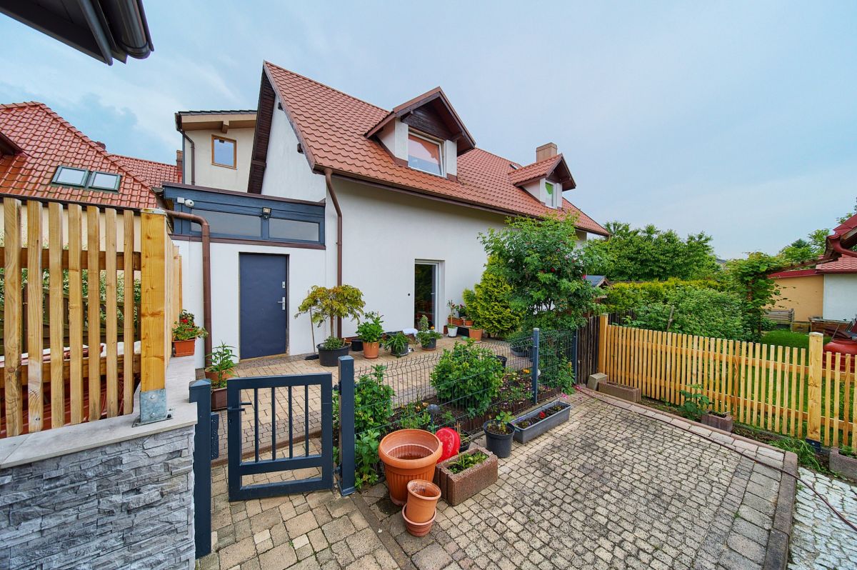 Jako doskonałe uzupełnienie nowoczesnego budynku wielofunkcyjnego, na terenie posesji znajduje się również urokliwy, wolnostojący dom jednorodzinny, wybudowany w 2001 roku. Oferuje on bardziej tradycyjny układ mieszkalny i pełnię prywatności. Na parterze domu znajdziemy otwartą strefę dzienną z salonem i funkcjonalnym aneksem kuchennym, dodatkowy, wszechstronny pokój idealny na gabinet lub gościnną sypialnię, oraz łazienkę. Piętro to typowa strefa nocna z trzema przytulnymi sypialniami oraz drugą, komfortową łazienką. Dom ten posiada bezpośrednie wyjścia na słoneczny taras z widokiem na ogród oraz dodatkowe, boczne wyjście na taras - idealne miejsca do wypoczynku na świeżym powietrzu. Zewnętrzne rolety zapewniają mieszkańcom większą prywatność i bezpieczeństwo, a praktyczne wejście na strych oferuje cenną, dodatkową przestrzeń do przechowywania.