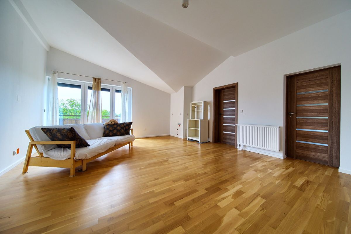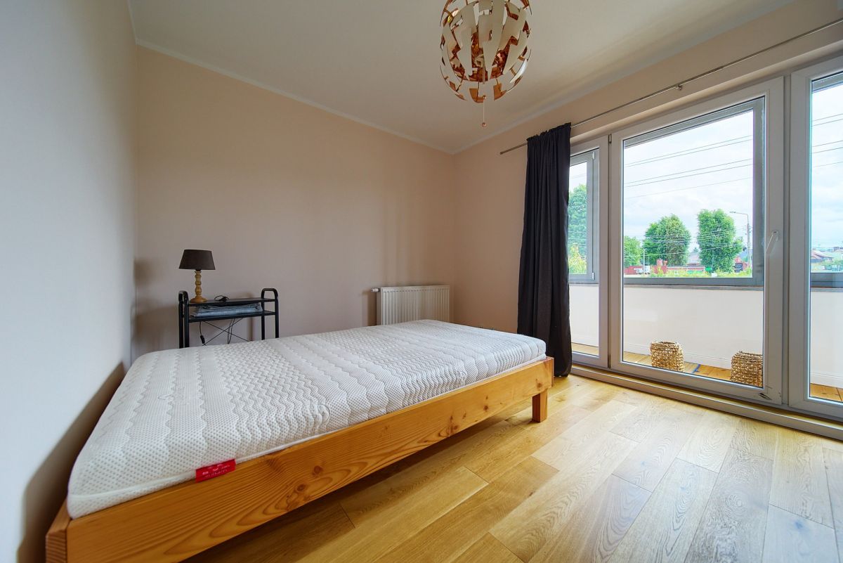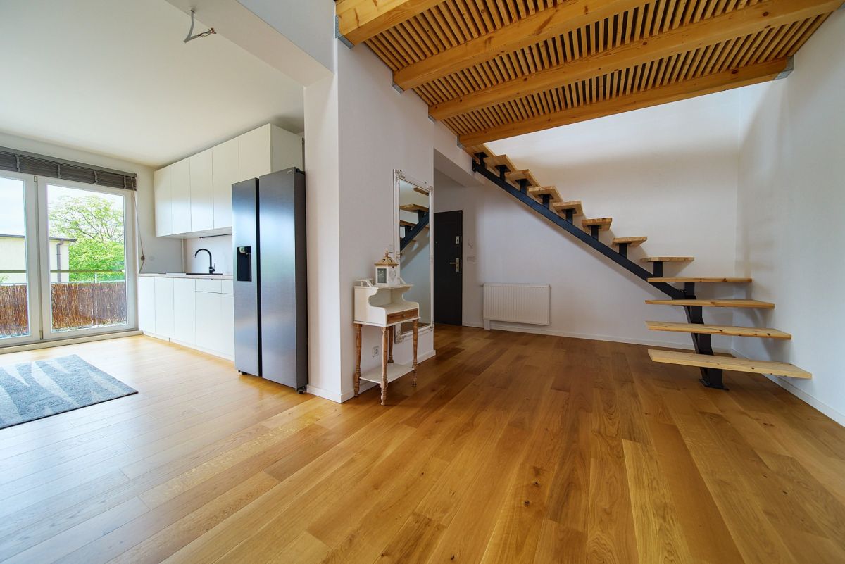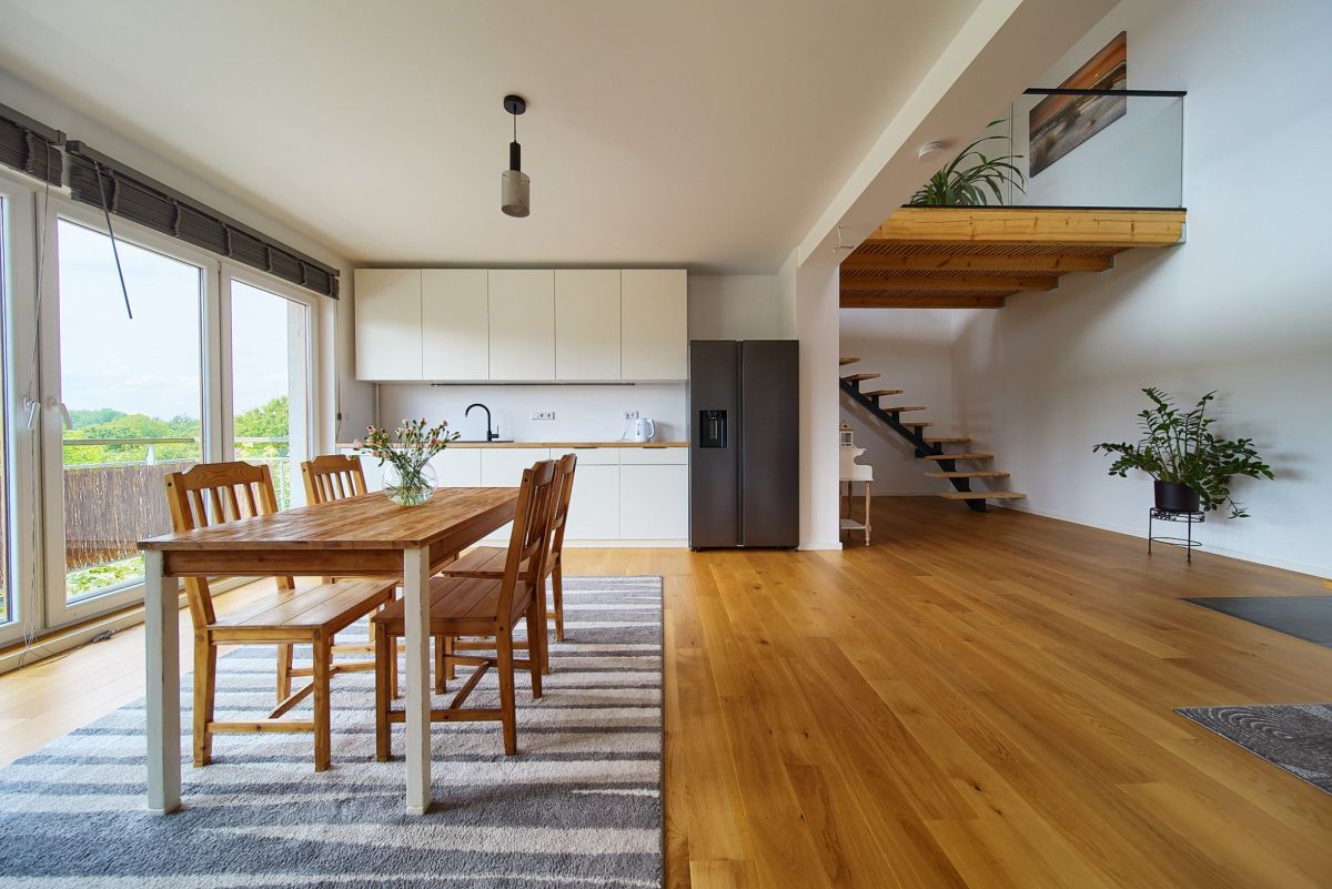 Z tej samej centralnej klatki schodowej dostępne jest również niezależne, komfortowe mieszkanie rodzinne. Funkcjonalny układ obejmuje jasną kuchnię otwartą na przytulny salon, tworząc idealne miejsce do wspólnego spędzania czasu, trzy ustawne, dobrze doświetlone sypialnie zapewniające prywatność każdemu z domowników, oraz nowoczesną łazienkę z WC. To doskonała propozycja dla rodziny z dziećmi lub jako atrakcyjna inwestycja pod wynajem.