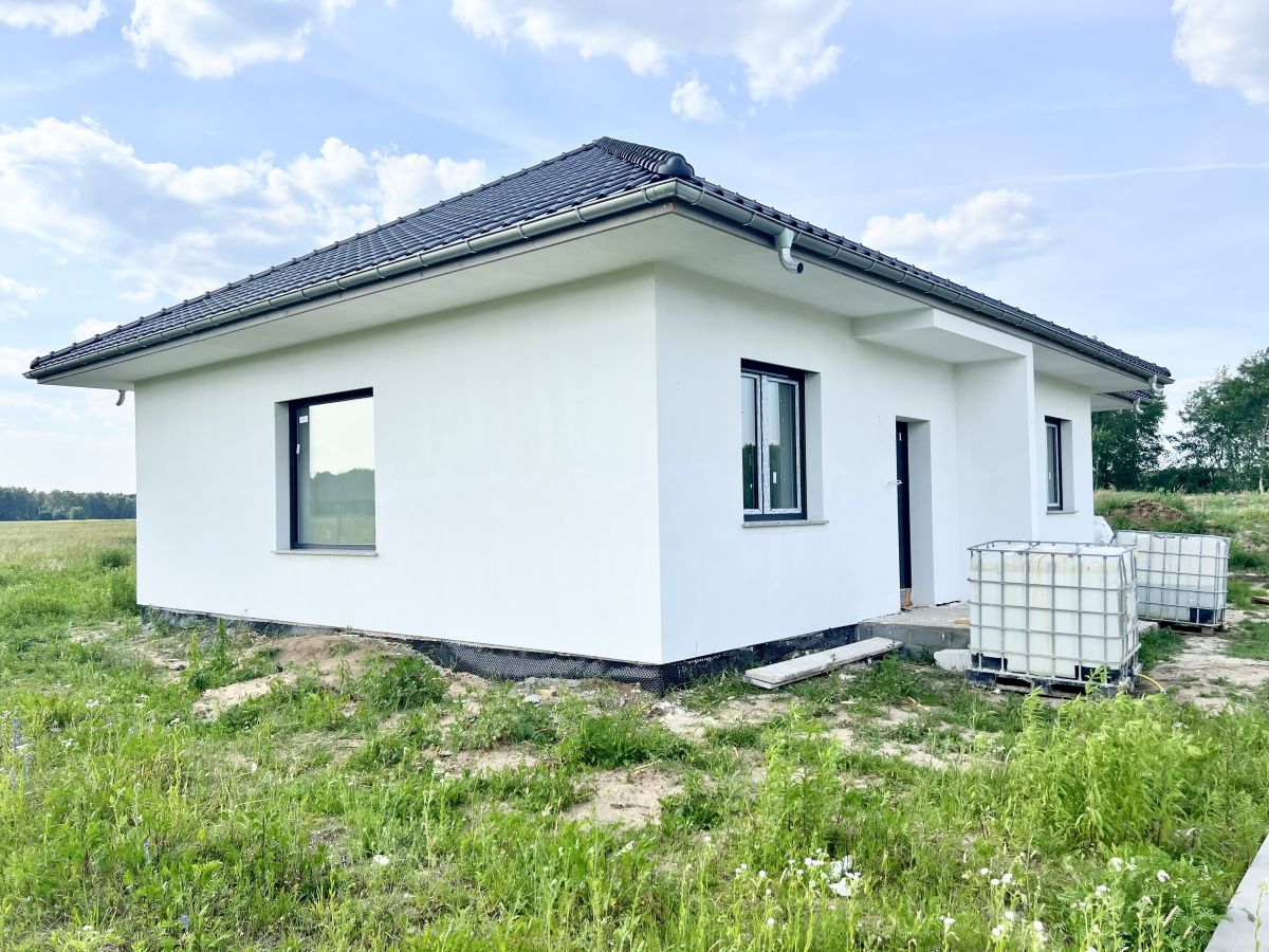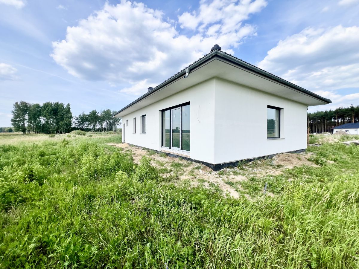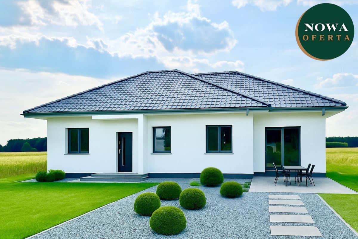 Na sprzedaż nowoczesny, parterowy dom wolnostojący z poddaszem do adaptacji (z oknem), zlokalizowany na przestronnej działce o powierzchni 0,0916 ha. Budynek został zaprojektowany z myślą o 2-5 osobowej rodzinie, wykonany w wysokim standardzie deweloperskim. Gotowy do zakupu i dalszego wykończenia według indywidualnych preferencji.