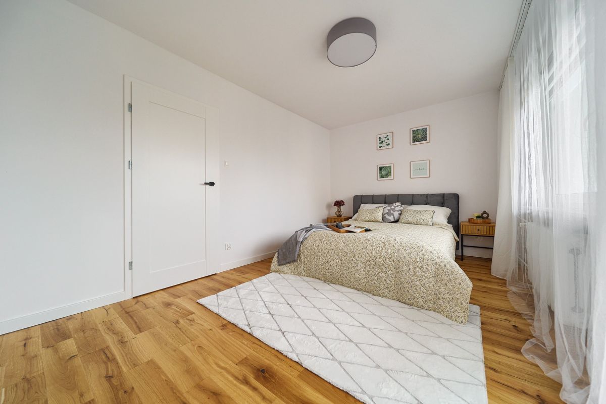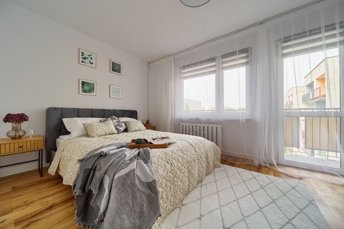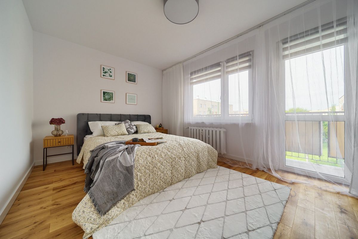 Wnętrze o powierzchni niemal 64 metrów zostało zaprojektowane z myślą o maksymalnej wygodzie rodziny. Sercem mieszkania jest przestronny salon połączony z aneksem kuchennym, co tworzy otwartą strefę dzienną sprzyjającą wspólnemu spędzaniu czasu. Oprócz tego do dyspozycji są dwie ustawne sypialnie - jedna z nich posiada wyjście na balkon, który jest idealnym miejscem na poranną kawę. Prawdziwym hitem tego układu jest dodatkowe pomieszczenie, które świetnie sprawdzi się jako pojemna garderoba lub domowe biuro - to rozwiązanie, którego brakuje w większości mieszkań w blokach. Komfortu dopełnia fakt, że łazienka i toaleta stanowią dwa osobne pomieszczenia.