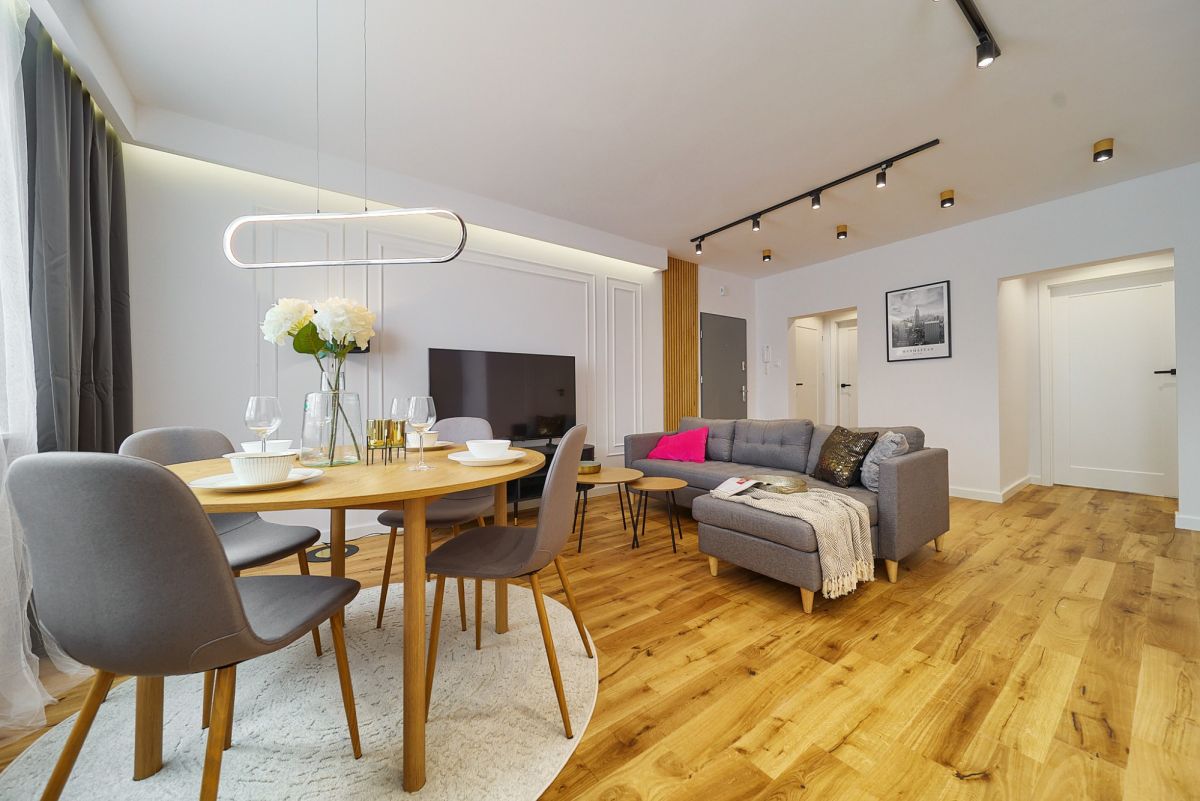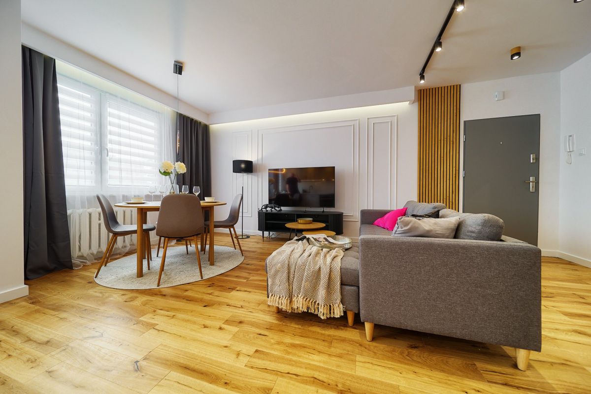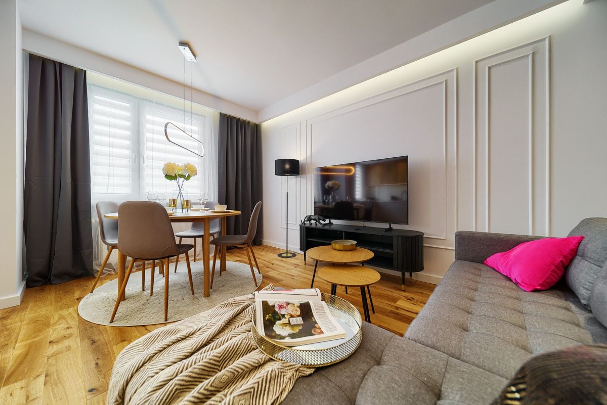 To mieszkanie nie wymaga żadnych nakładów finansowych ani uciążliwych remontów. Zostało wykończone z dbałością o detale i przy użyciu wysokiej klasy materiałów. Wnętrza są jasne dzięki dwustronnej ekspozycji okien, a nowoczesna stylistyka sprawia, że czujemy się tu przytulnie od razu po wejściu. Co najważniejsze, mieszkanie sprzedawane jest jako w pełni umeblowane - wszystkie meble oraz elementy wyposażenia widoczne podczas prezentacji pozostają w cenie nieruchomości.