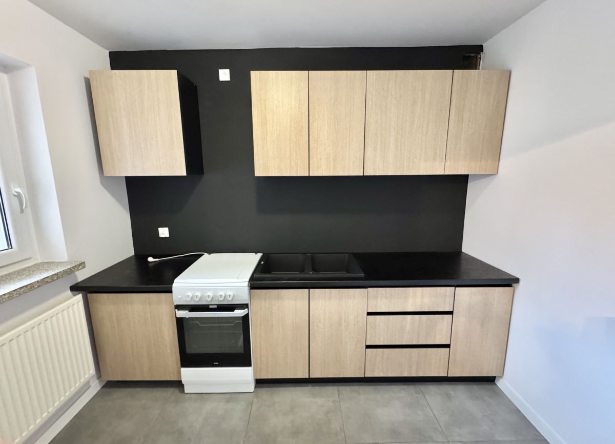 Kuchnia wykonana od podstaw wyposażona w nowe płytki meble oraz zlew