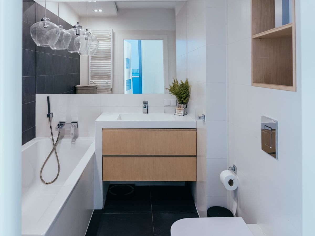 Dolna kondygnacja to tętniące życiem serce domu. Znajdziemy tu nowoczesną, w pełni wyposażoną kuchnię otwartą na przestronny salon z jadalnią. To idealne miejsce na wspólne posiłki i spotkania z bliskimi. Na tym poziomie znajdują się również dwa ustawne pokoje, które świetnie sprawdzą się jako sypialnie dziecięce, gabinet do pracy lub pokój gościnny. Komfortu dopełnia elegancka łazienka oraz praktyczne pomieszczenie gospodarcze, które rozwiązuje problem przechowywania rzeczy sezonowych, odkurzacza czy wózka.