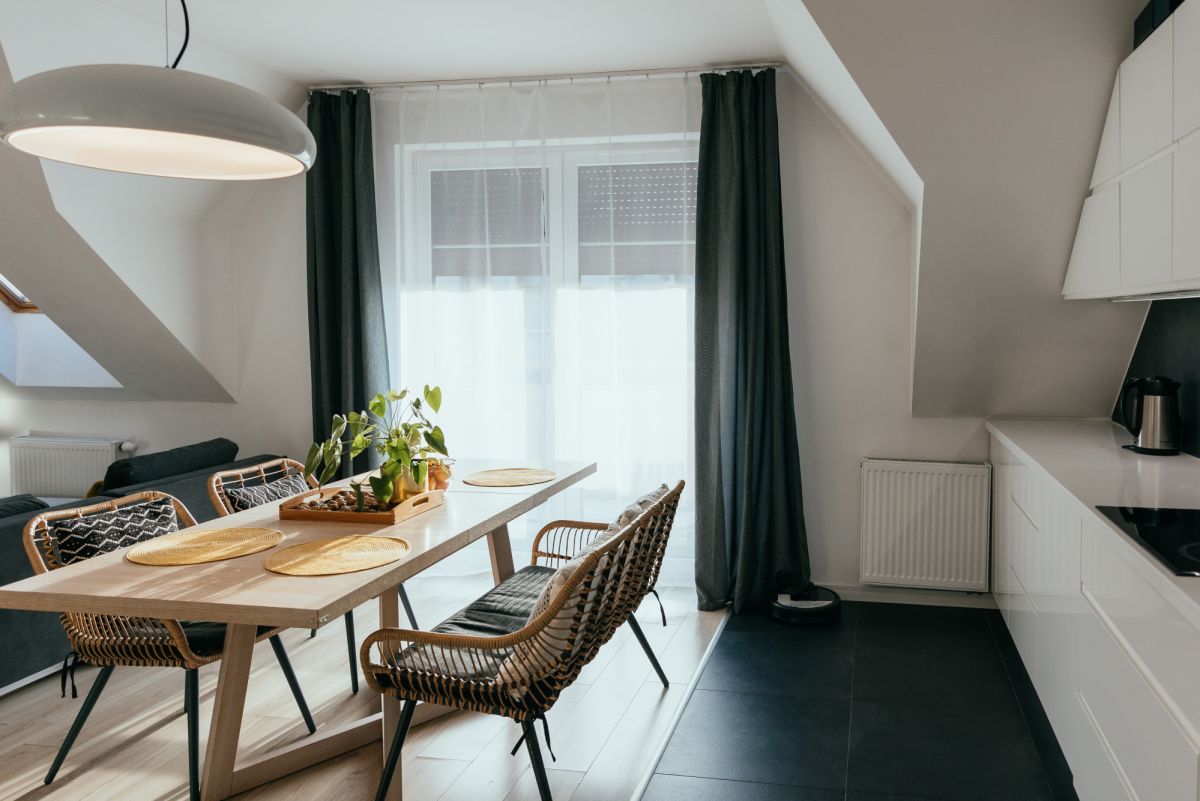 Mieszkanie zostało wykończone materiałami wysokiej jakości i jest utrzymane w idealnym stanie - gotowe do wprowadzenia bez żadnych nakładów finansowych. W cenie nieruchomości pozostają wszystkie meble w zabudowie, w tym kompletna kuchnia oraz pojemne szafy. O komfort termiczny przez cały rok dba zamontowana klimatyzacja na każdym poziomie oraz rolety zewnętrzne, które zapewniają prywatność i ochronę przed słońcem.