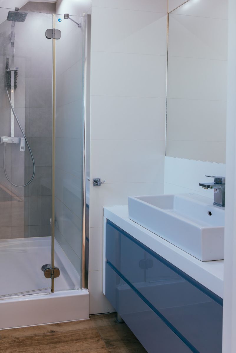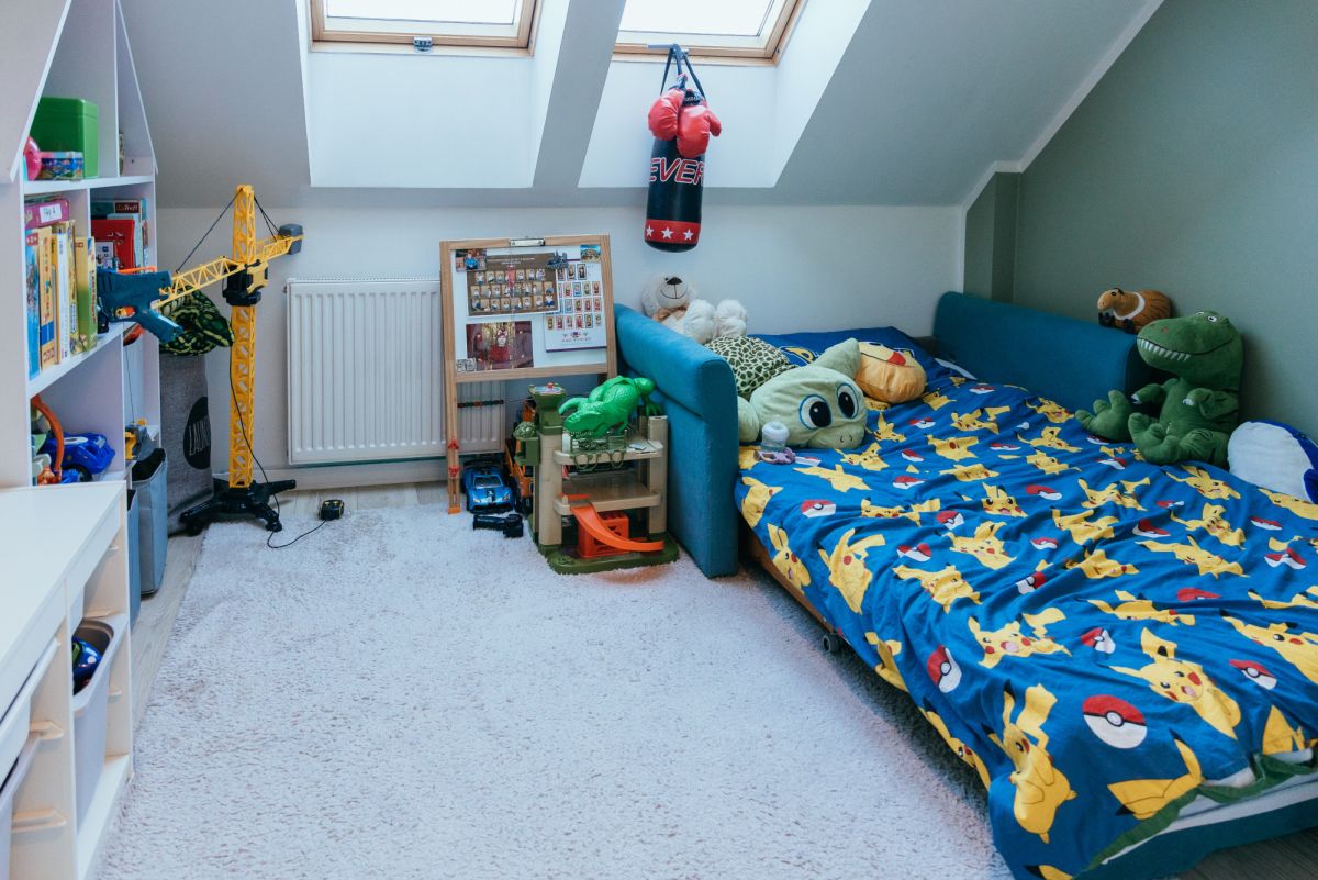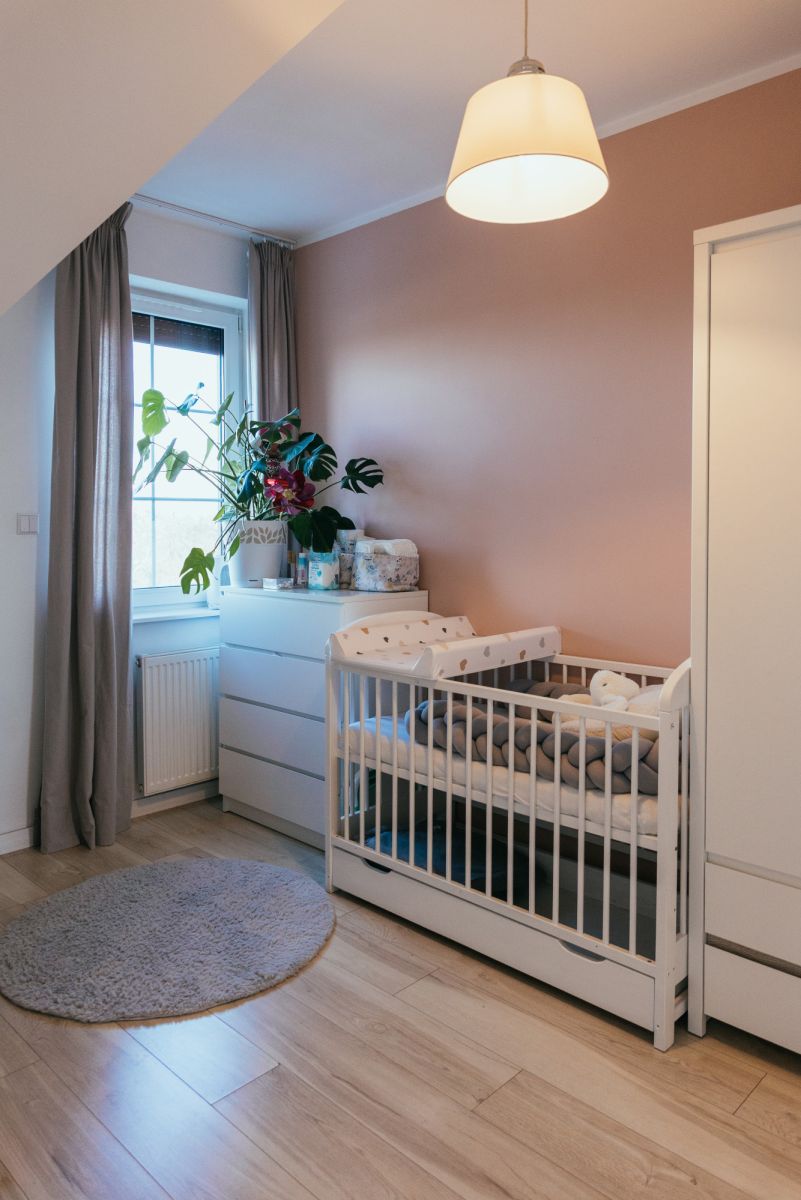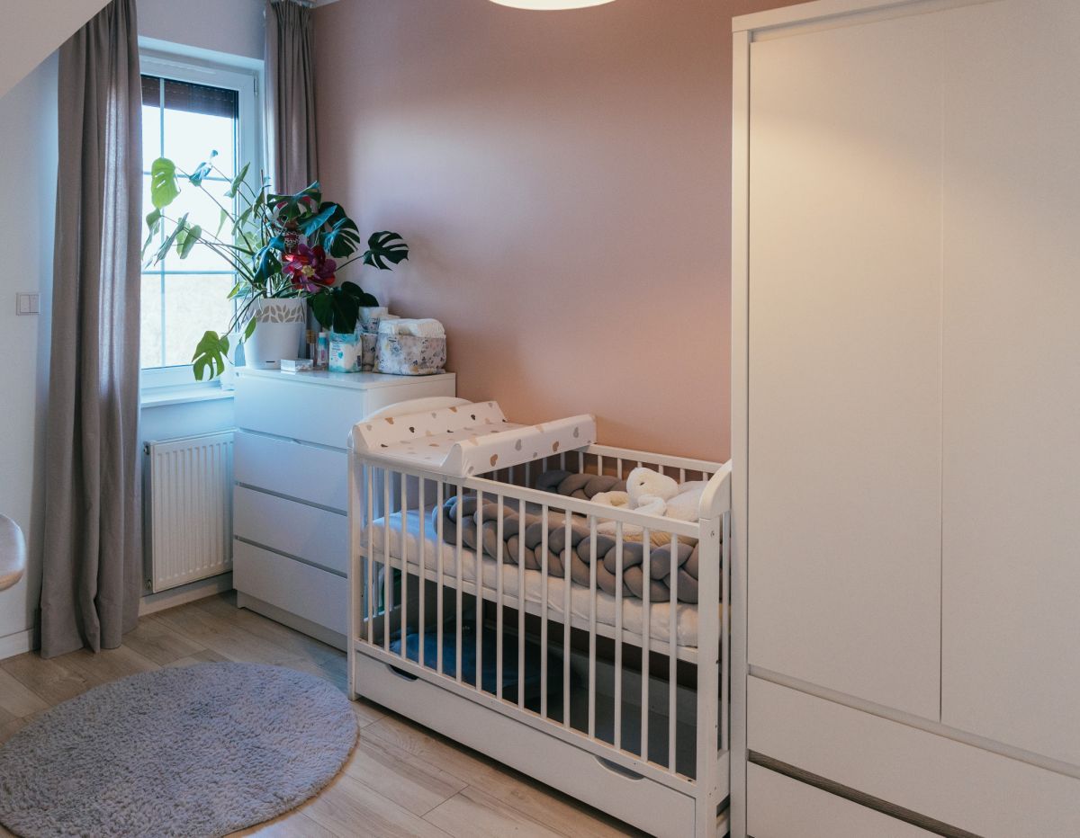 Górna kondygnacja to intymna strefa gospodarzy, na którą prowadzą solidne, piękne schody. Znajduje się tu przytulna, duża sypialnia połączona z garderobą, tworząca prywatny azyl ciszy i spokoju. Ogromnym atutem tego poziomu jest druga łazienka wyposażona w prysznic i WC, co przy większej rodzinie jest nieocenionym udogodnieniem. Skosy nadają temu miejscu niepowtarzalnego, przytulnego charakteru, nie odbierając mu funkcjonalności.