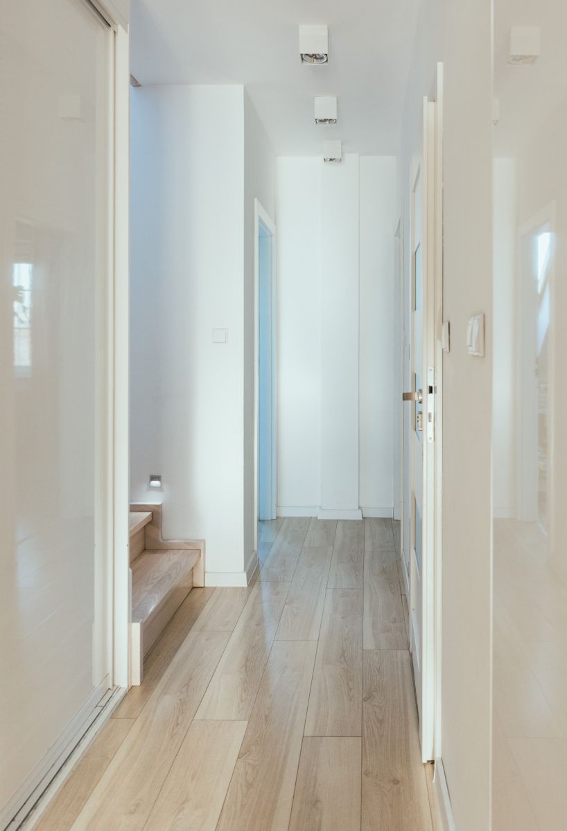 Dolna kondygnacja to tętniące życiem serce domu. Znajdziemy tu nowoczesną, w pełni wyposażoną kuchnię otwartą na przestronny salon z jadalnią. To idealne miejsce na wspólne posiłki i spotkania z bliskimi. Na tym poziomie znajdują się również dwa ustawne pokoje, które świetnie sprawdzą się jako sypialnie dziecięce, gabinet do pracy lub pokój gościnny. Komfortu dopełnia elegancka łazienka oraz praktyczne pomieszczenie gospodarcze, które rozwiązuje problem przechowywania rzeczy sezonowych, odkurzacza czy wózka.