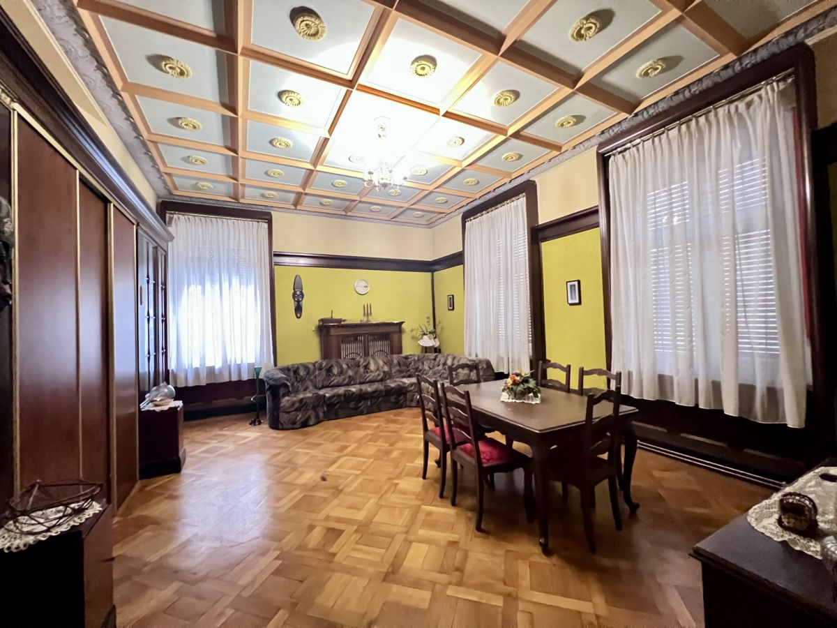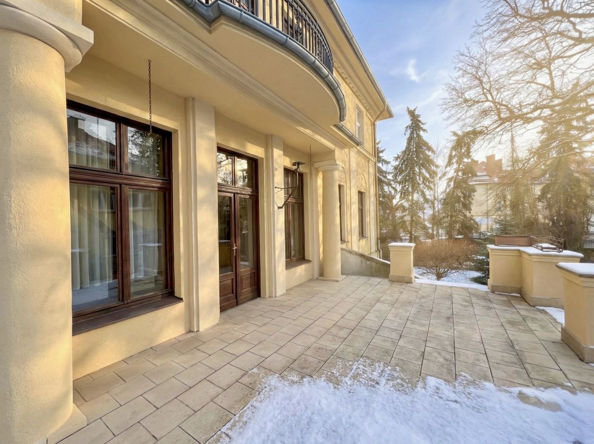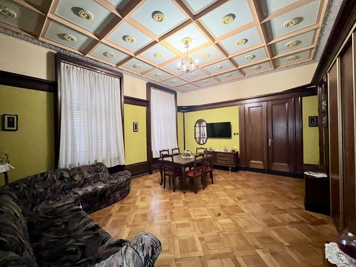 Po przekroczeniu progu od razu czuć wyjątkowość tego miejsca. Sercem domu jest imponujący salon, w którym uwagę przykuwają wysokie sufity, eleganckie drewniane boazerie oraz klasyczny kominek, idealny na chłodne wieczory. Z tego reprezentacyjnego pomieszczenia prowadzi wyjście na przepiękny, duży taras otoczony stylowymi kolumnami - to idealne miejsce na poranną kawę z widokiem na zieleń. Kolejne pokoje utrzymane są w równie podniosłym stylu, z czego jeden zachwyca unikalnym, kasetonowym sufitem. Do dyspozycji mieszkańców jest także duża, oddzielna i w pełni umeblowana kuchnia ze strefą jadalnianą, która pomieści całą rodzinę. Wnętrza te, choć wymagają odświeżenia lub własnej aranżacji, posiadają niepodrabialny charakter, którego nie znajdziemy w nowym budownictwie.