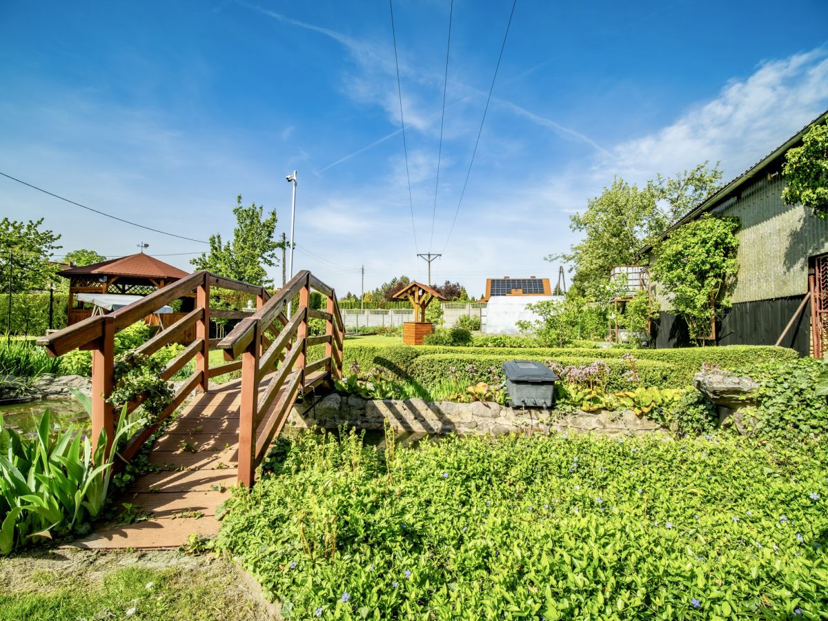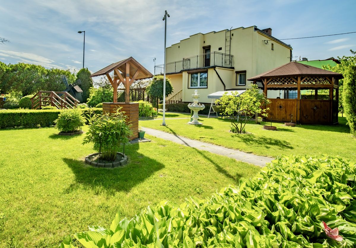 Działka o powierzchni 12 arów została starannie zagospodarowana i zapewnia prywatność oraz możliwość korzystania z różnych stref według potrzeb domowników. Wydzielono część rekreacyjną idealną do wypoczynku oraz część użytkową przeznaczoną do nasadzeń, uprawy roślin i warzyw. Znajduje się tu oczko wodne z rybami, które nadaje ogrodowi wyjątkowego klimatu, altana z kompletem mebli ogrodowych z 2016 roku tworząca gotową przestrzeń do spotkań i spędzania czasu na świeżym powietrzu, dwa zbiorniki na wodę deszczową jako praktyczne i ekonomiczne wsparcie pielęgnacji ogrodu, a także budynek gospodarczy z doprowadzonym prądem, idealny na narzędzia, sprzęt ogrodniczy czy warsztat. Do posesji prowadzą dwa niezależne wjazdy, co ułatwia parkowanie i organizację przestrzeni, a przy ulicy dostępne są dodatkowe miejsca parkingowe. To nieruchomość, która daje swobodę - miejsce na auta, rekreację, ogród, strefę zabawy dla dzieci i przestrzeń dla osób aktywnych.
