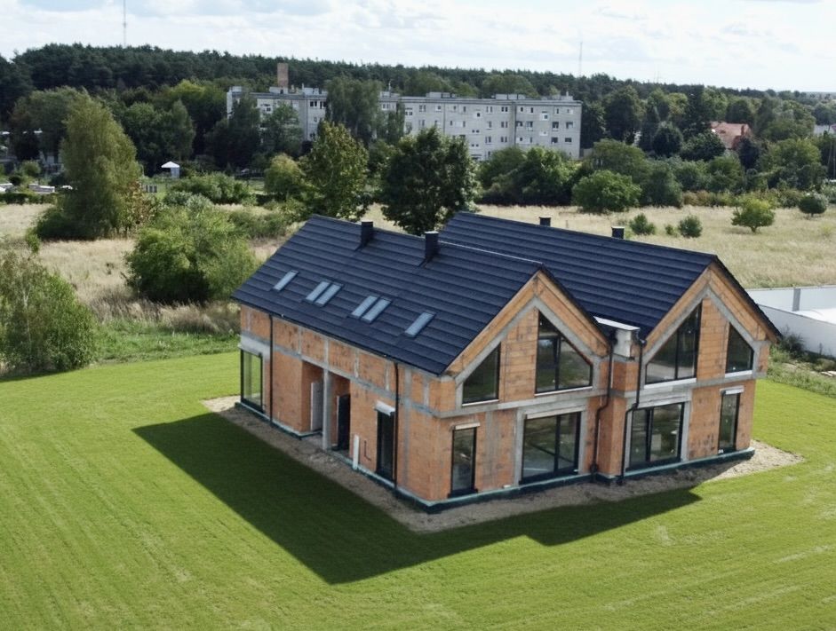 Dom budowany z wysokiej klasy materiałów - ściany z pustaka ceramicznego, strop SMART, dachówka ceramiczna. Wyposażony w stolarkę okienną PCV (antracyt/biały), kompletne instalacje (elektryczna, wodno-kanalizacyjna, C.O., TV, internet). Zamontowany będzie nowoczesny kocioł gazowy dwufunkcyjny. Posadzki i tynki przygotowane pod dalsze prace wykończeniowe.