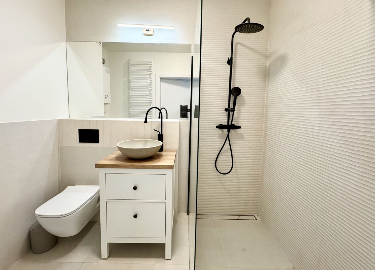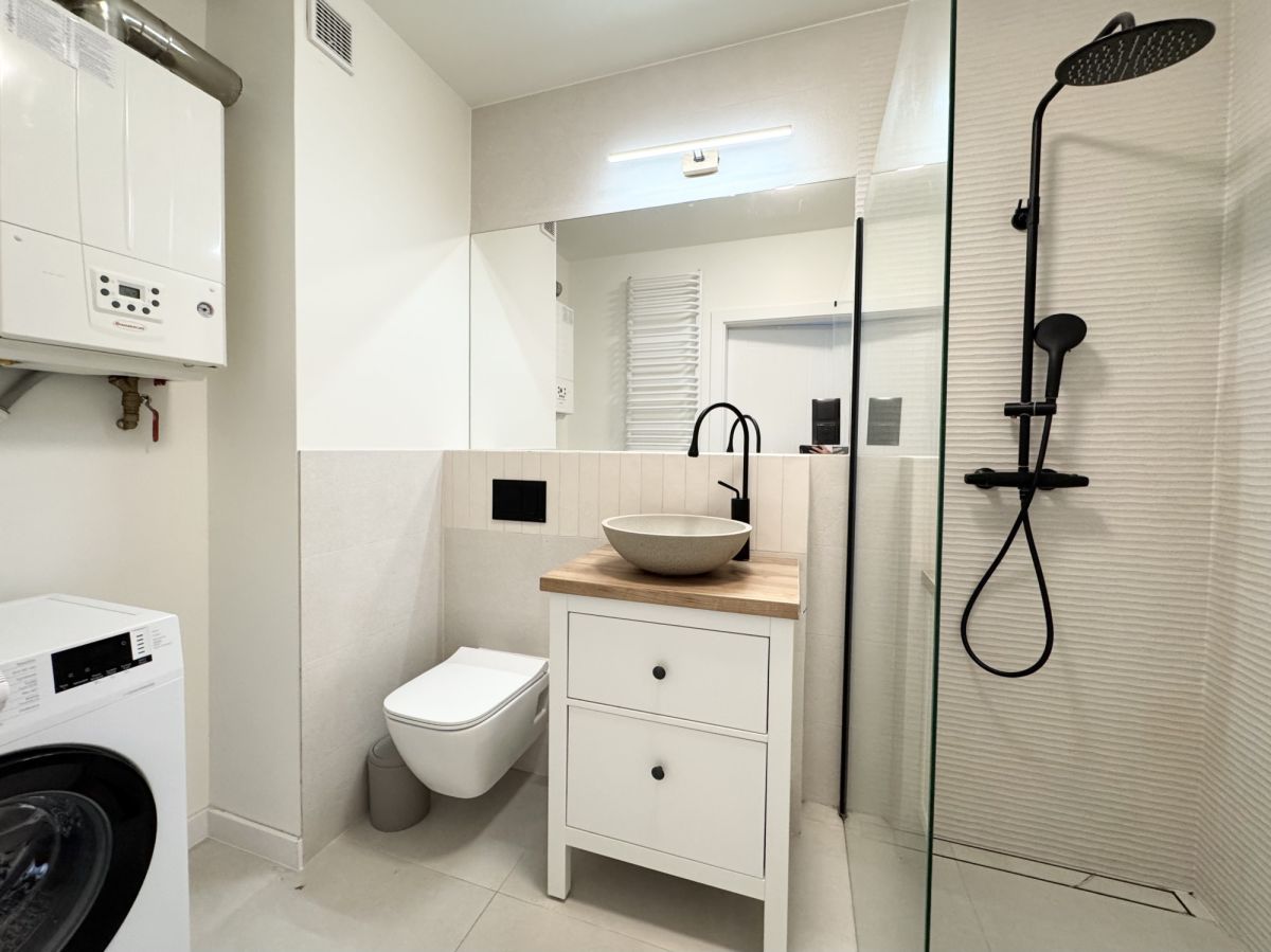 Mieszkanie przeszło kapitalny remont i zostało wykończone w wysokim standardzie. W kuchni zamontowano zabudowę meblową na wymiar wraz ze sprzętem AGD - w tym zmywarka, lodówka oraz kuchenka. W łazience nowoczesny prysznic, całość utrzymana w estetycznym, nowoczesnym stylu. Mieszkanie jest sprzedawane z pełnym wyposażeniem, co czyni je gotowym do wprowadzenia się bez konieczności dodatkowych inwestycji.
